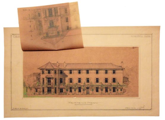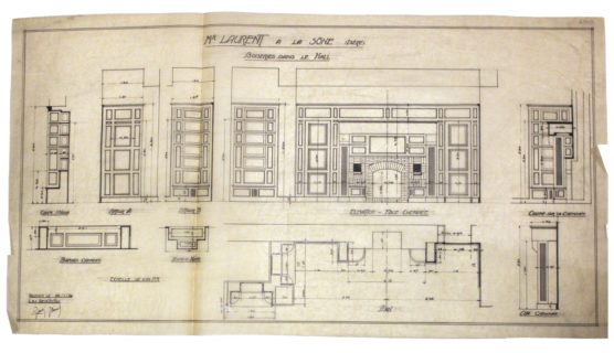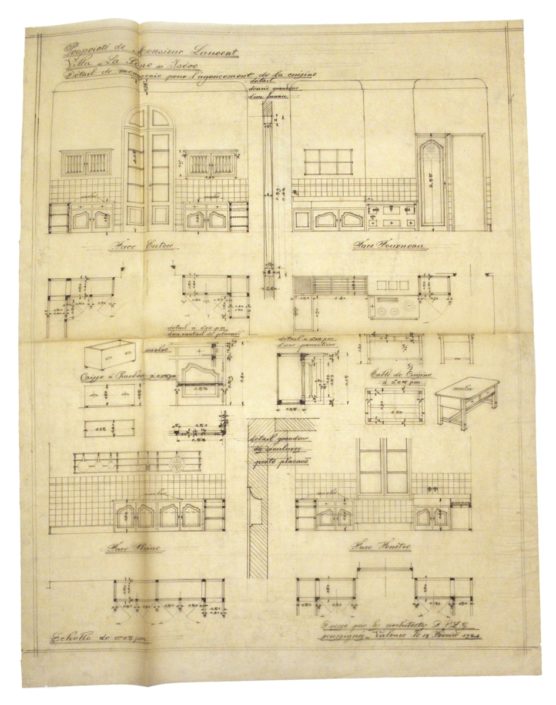 DESCRIPTION Architectes : Joulie Henri ; Bissuel Joseph Nature du projet : Villa « La Sône » ; projet d’agrandissement ; aménagement intérieur Lieu : La Sône ; Isère (FR) Techniques : Dessin sur calque ; mine de plomb Dimensions : L = 65 cm ; l = 84,5 cm Dates du projet : 1923-1924…