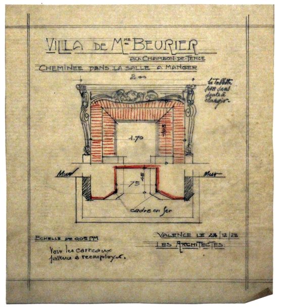 DESCRIPTION Architectes : Joulie Henri ; Bissuel Joseph Nature du projet : Villa de Mme Beurier Lieu : Chambon-sur-Lignon ; Haute-Loire (FR) Techniques : Dessin sur calque ; mine de plomb ; crayon pastel Dimensions : L = 23,8 cm ; l = 26,5 cm Dates du projet : 1922-1923 Signature : Dessin…