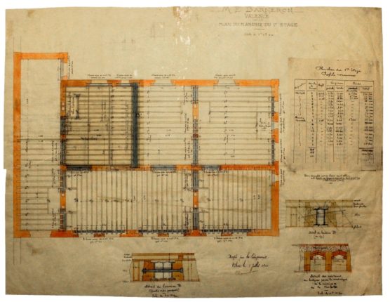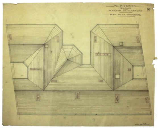 DESCRIPTION Architectes : Rey Joannis Nature du projet : Maison d’habitation de M. P. Tézier Lieu : Valence ; Drôme (FR) Techniques : Dessin sur calque ; encre de Chine ; encre noire Dimensions : L = 58,3 cm ; l= 48 cm Dates du projet : 1903 Signature : Dessin non signé…