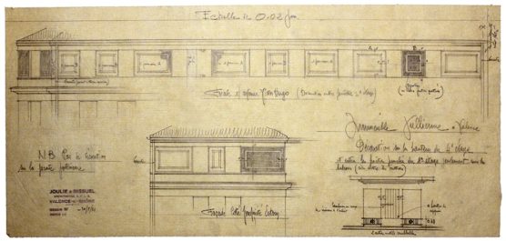 DESCRIPTION Architectes : Joulie Henri ; Bissuel Joseph Nature du projet : Garage Donnet et établissements de M. Vullierme ; devanture de magasin ; aménagement de logement dans l’immeuble ; garage automobile Donnet Lieu : Valence ; Drôme (FR) Techniques : Dessin sur calque ; mine de plomb Dimensions : L = 65,5…