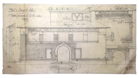 DESCRIPTION Architectes : Joulie Henri Nature du projet : Maison d’habitation de Mme Brisson Lieu : Chabeuil ; Drôme (FR) Techniques : Dessin sur calque ; encre de Chine ; encre noire Dimensions : L = 56 cm ; l = 37,7 cm Dates du projet : 1908 / 1910 Signature : Dessin…