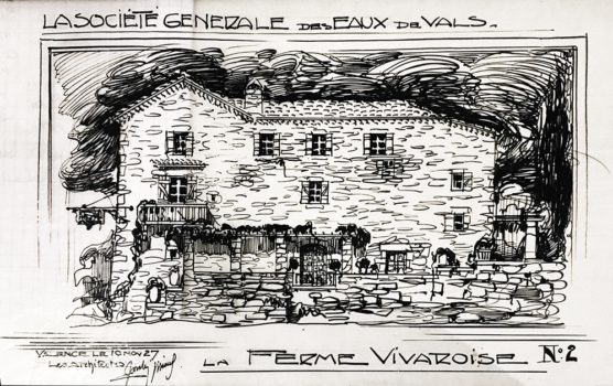DESCRIPTION Architectes : Joulie Henri ; Joseph Bissuel Nature du projet : Ferme Vivaroise Lieu : Vals-les-Bains ; Ardèche (FR) Techniques : Dessin sur calque ; encre de Chine ; encre noire Dimensions : L = 28,8 cm ; l = 17,6 cm Dates du projet : 1927 / 1928 Signature : Dessin…