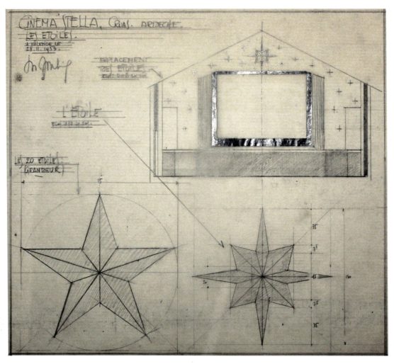 DESCRIPTION Architectes : Joulie Michel Nature du projet : Cinéma « Stella » (salle paroissiale), projet d’aménagement Lieu : Cruas ; Ardèche (FR) Techniques : Dessin sur calque ; mine de plomb Dimensions : L = 36,5 cm ; l = 33,5 cm Dates du projet : 1953 Signature : Dessin signé Michel Joulie Compléments historiques…