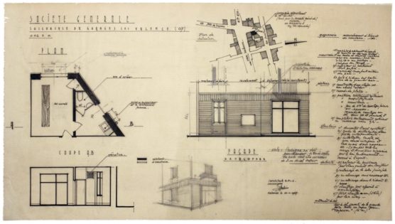 DESCRIPTION Architectes : Joulie Jean-Pierre ; Joulie Michel Nature du projet : Société générale, succursale de Granges-les-Valence Lieu : Guilherand-Granges ; Ardèche (FR) Techniques : Dessin sur calque ; encre de Chine ; encre noire ; mine de plomb Dimensions : L = 66,7 cm ; l = 37,2 cm Dates du projet :…