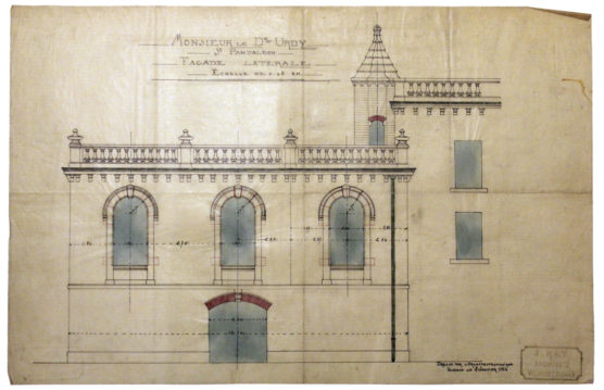 DESCRIPTION Architectes : Anonyme Nature du projet : Maison d’habitation de M. Sibilat Frères, projet d’agrandissement Lieu : Romans-sur-Isère ; Drôme (FR) Techniques : Dessin sur papier ; encre de Chine ; encre noire ; aquarelle Dimensions : L = 45,6 cm ; l = 29,4 cm Dates du projet : 1909 Signature :…